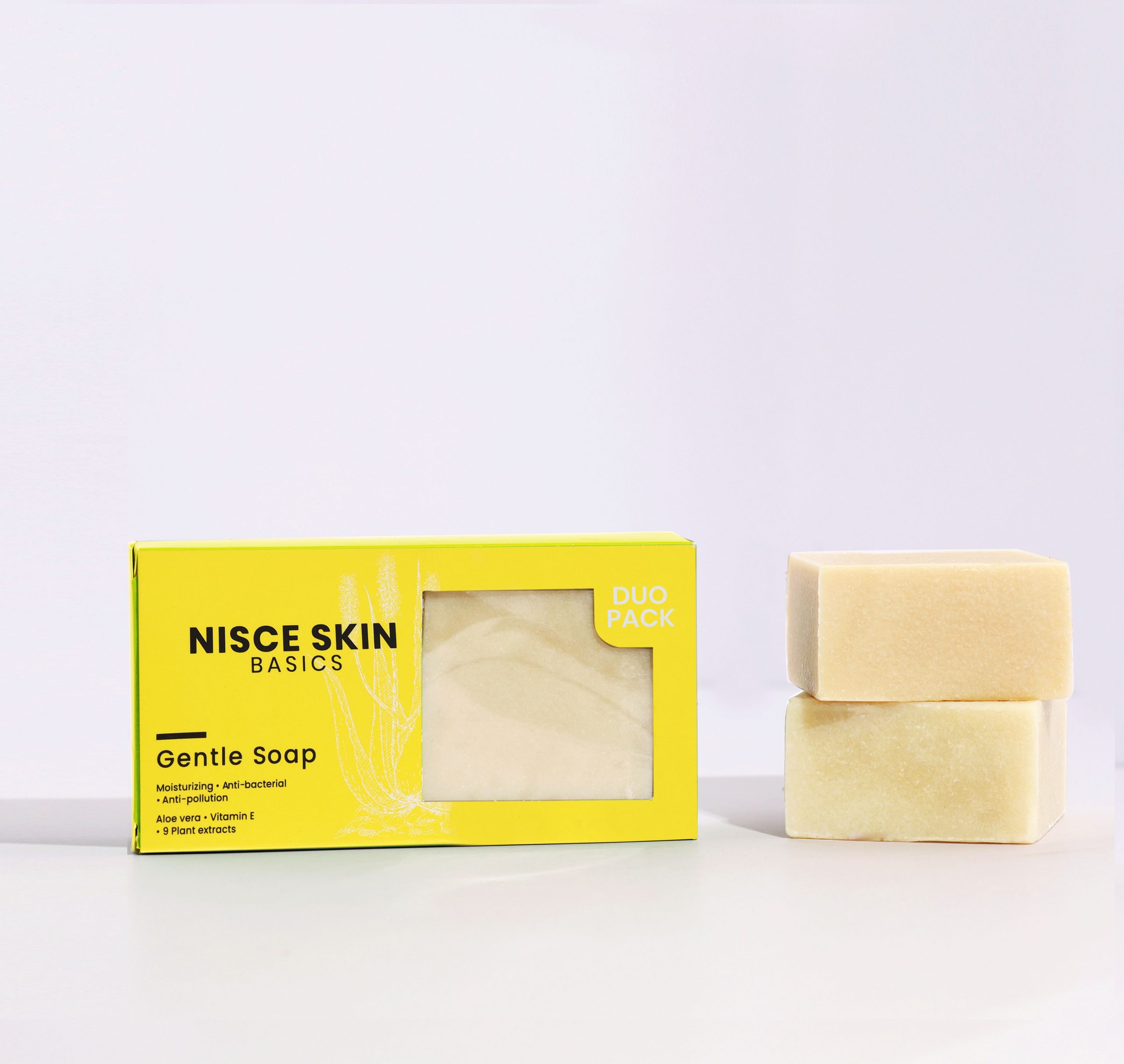 NISCE SKIN BASICS Gentle Soap is rich with 9 plant extracts of Vitamin E, Aloe Vera, Rainbow Plant, Okra, Peach, Yuzu, Evening Primrose and Artichoke. These natural ingredients work perfectly in-sync to provide moisture and create a protective barrier from pollution and bacteria to help inhibit skin ageing: skin is revitalized and protected from environmental stressors. This mild soap does not contain Paraben and Sodium Lauryl Sulfate (SLS).