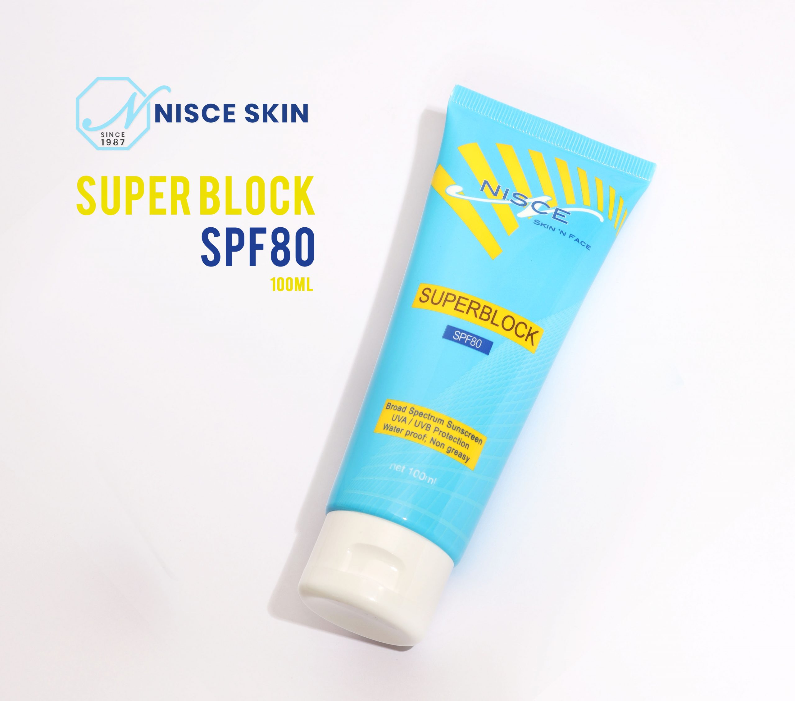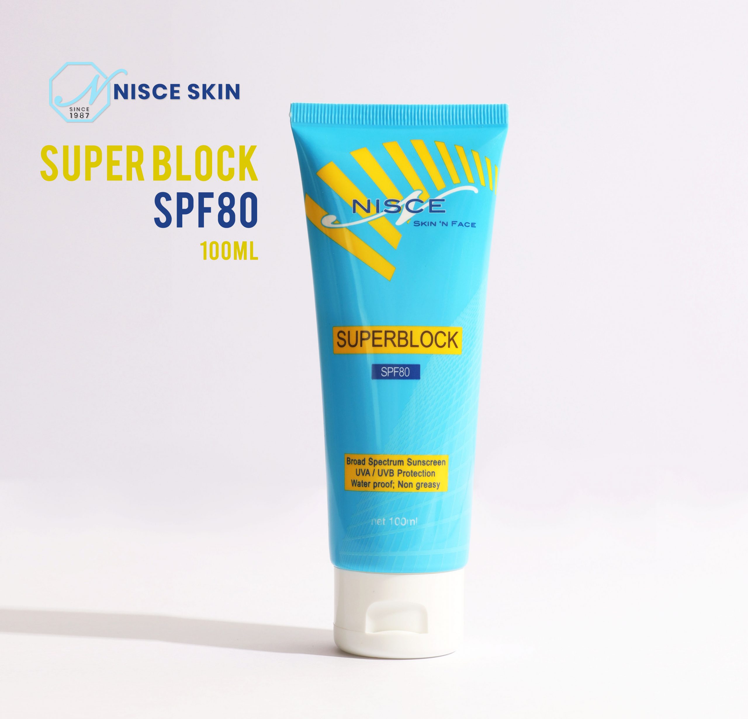 Get maximum protection from the sun with NISCE SKIN Superblock. It has SPF 80 that offers broad-spectrum protection from harmful UVA/UVB rays which cause skin photo-ageing, darks spots, and wrinkles. Its waterproof, non-greasy and light formulation that does not dry out skin.