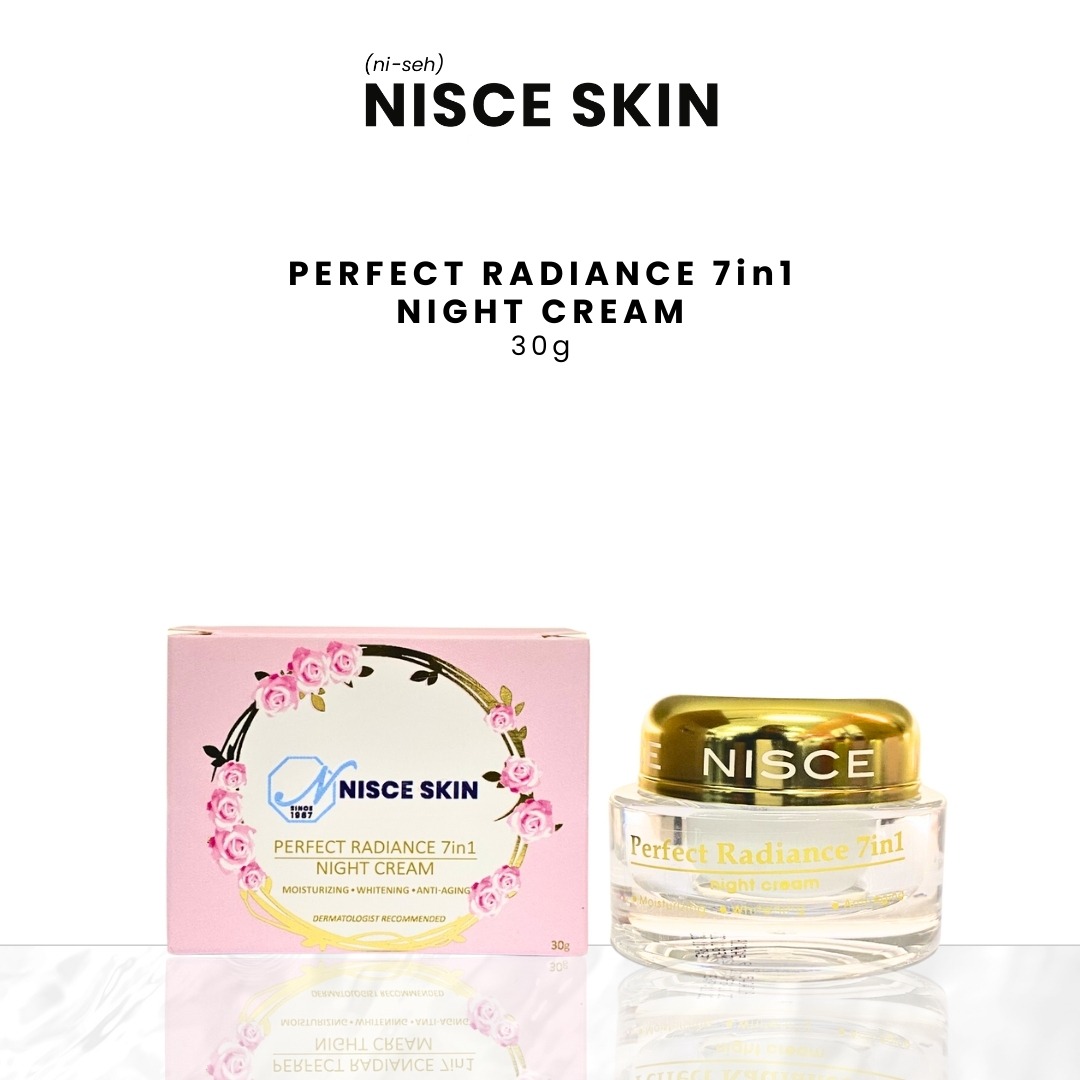 Formulated by experts, NISCE SKIN Perfect Radiance 7in1 Whitening Night Cream is infused with 8 vital fruit extracts, vitamins and antioxidants — dramatically whitening and moisturizing your skin. It contains Alpha Arbutin, Sodium Hyaluronate, Pear fruit extract, Vitamin E, and Claire Blanche with proven skin whitening agents. Within a few weeks, hyper-pigmentation is corrected, skin visibly renewed and radiance restored.
